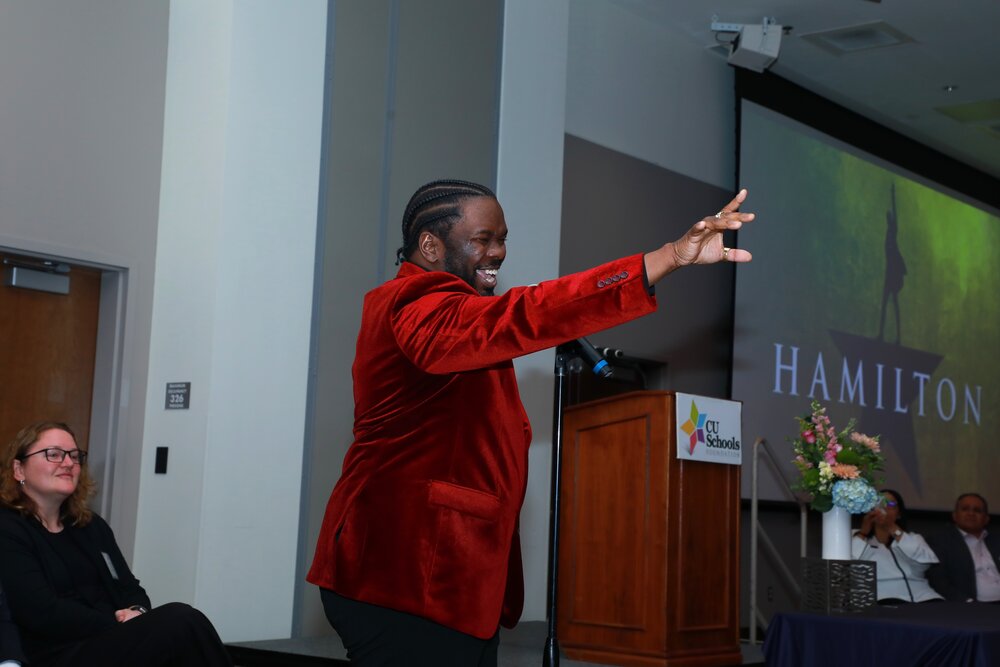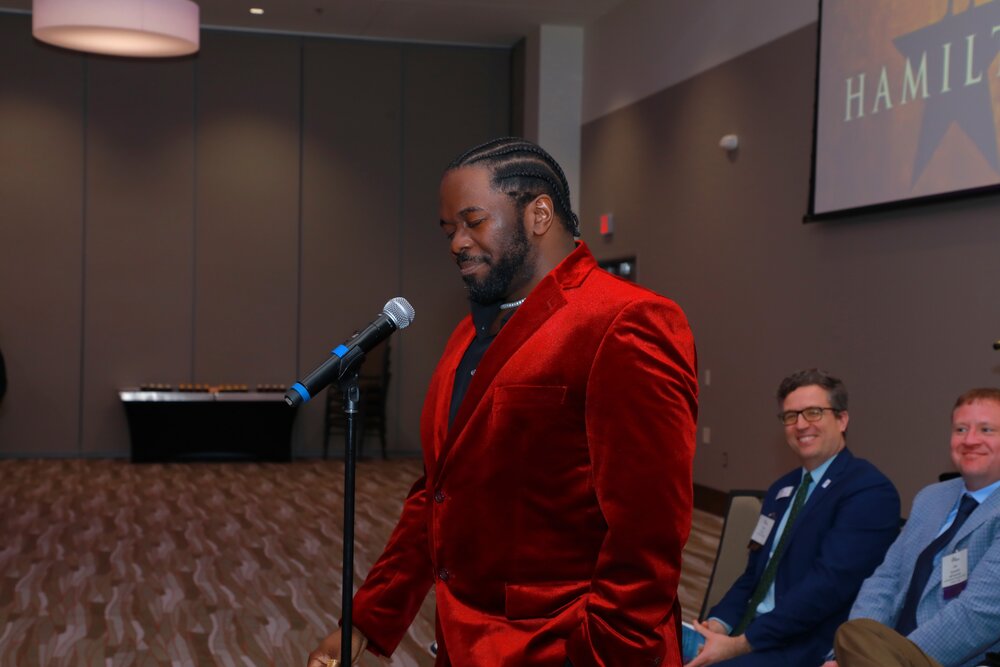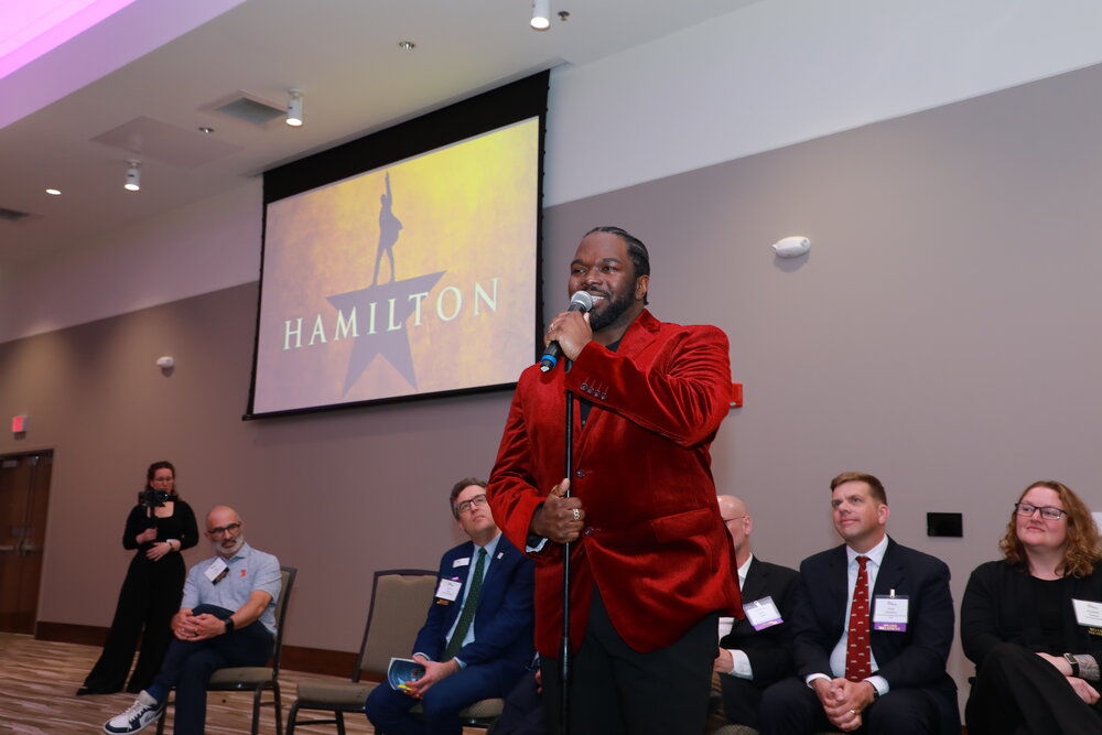 Jonathan’s career reached new heights when he joined the Broadway cast of Hamilton, performing in the ensemble and understudying the roles of Aaron Burr and George Washington. Despite national success, he remains deeply connected to his Champaign roots, returning to speak with students, support the arts community, and celebrate the educators who shaped his journey.